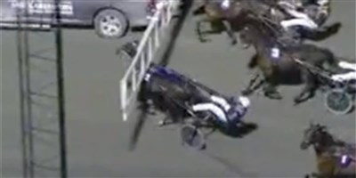 Hästen Lucky Duck fastnade med munnen i startbilsvingen och fick springa ca100m innan startbilspersonalen observerade händelsen och bromsade in (2011 03 01).