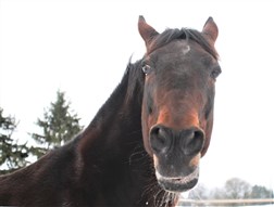 En otroligt sur och grinig märr med skaplig stam som ledsnat på att tävla stod alltid med slickade öron och stirrade stint på mig varje gång en häst från stora skogshagen skulle hämtas eller lämnas. Vad gör man med ett sån sto normalt (ja, just det).