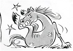 Normalt sett stannar hästen bakom vingen, men min stack under vingen med huvudet och sprang iväg. Han skrapade nacken och ryggen lite, men det var inte så farligt.